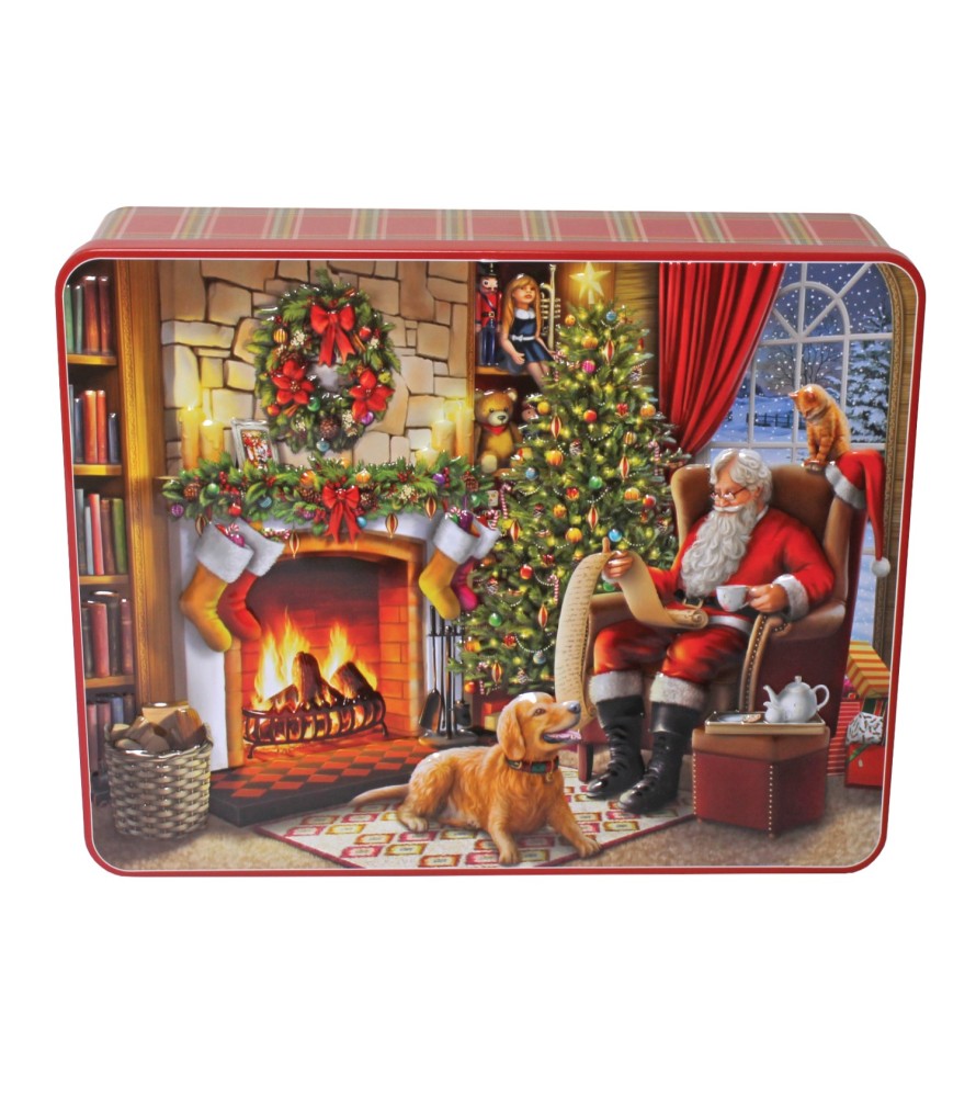 Embossed 'Santa by the Fire' Tin with Shortbread and Chocolate Chip Biscuits